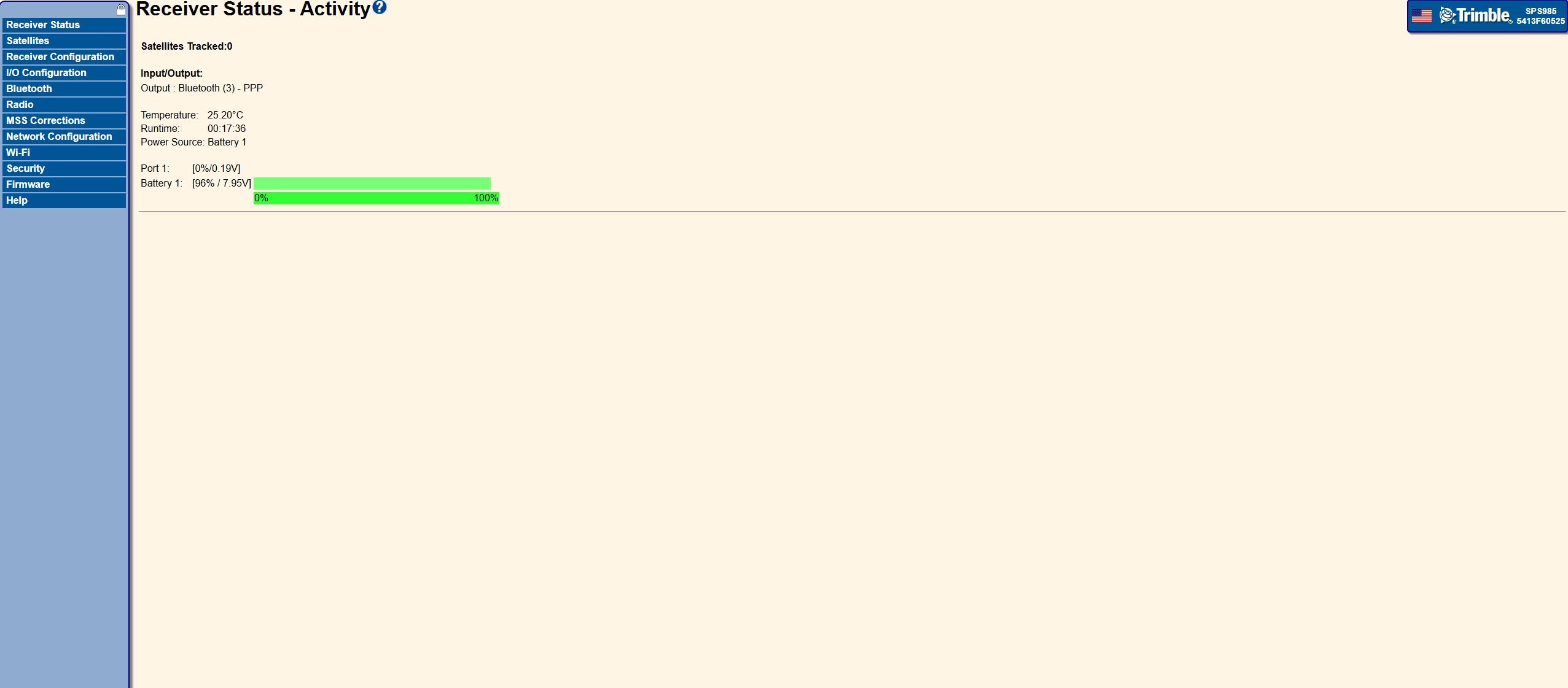 Both receivers have been powered on, accessed via the Trimble Web Interface, and verified for:
